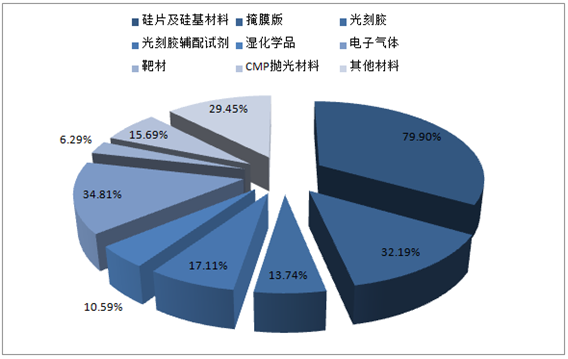 按照電子化學(xué)品在半導(dǎo)體工藝流程的應(yīng)用領(lǐng)域和要求,主要可分為硅片和硅基 材料、濕化學(xué)品、光刻膠及輔料、CMP拋光液、特種氣體、高純化學(xué)品等, 這些產(chǎn)品占半導(dǎo)體用電子化學(xué)品全部市場的80%以上。