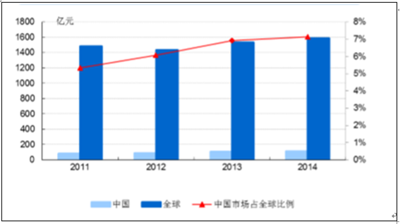 受益豐厚的政策紅利,加上我國生產(chǎn)成本較低,全球半導(dǎo)體產(chǎn)能向中國轉(zhuǎn)移 互聯(lián)網(wǎng)+、云計(jì)算、物聯(lián)網(wǎng)等電子信息產(chǎn)業(yè)也大力發(fā)展,國內(nèi)半導(dǎo)體產(chǎn)值快速 增長,2013年產(chǎn)值規(guī)模已達(dá)到約4千億元左右,2009-2013年的復(fù)合增長達(dá)到 18.9%,遠(yuǎn)高于全球7.7%的復(fù)合增速,在全球的比例也不斷提高。
