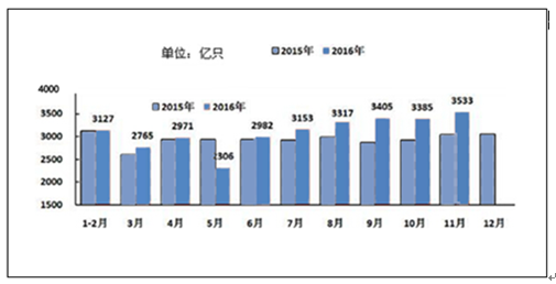 電子元件行業(yè)生產(chǎn)平穩(wěn)增長(zhǎng)。2016年1-11月,生產(chǎn)電子元件33715億只,同比增長(zhǎng)7.8%。出口交貨值同比增長(zhǎng)2.2%,其中11月份增長(zhǎng)1.4%。