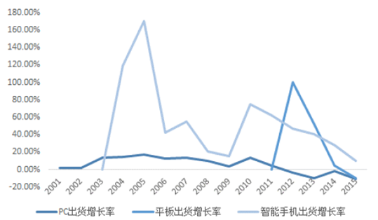 受宏觀經(jīng)濟(jì)因素的影響,全球半導(dǎo)體元器件需求不振。根據(jù)SIA公布的數(shù)據(jù),2015年全球半導(dǎo)體市場(chǎng)銷(xiāo)售額為3352億美元,同比下降了0.2%。全球半導(dǎo)體市場(chǎng)下滑的主要原因是PC銷(xiāo)售下降和智能手機(jī)出貨增速放緩。根據(jù)IDC統(tǒng)計(jì),2015年全球PC和平板出貨量同比下降約10%,而智能手機(jī)的增速?gòu)?014年27%降至10.13%。