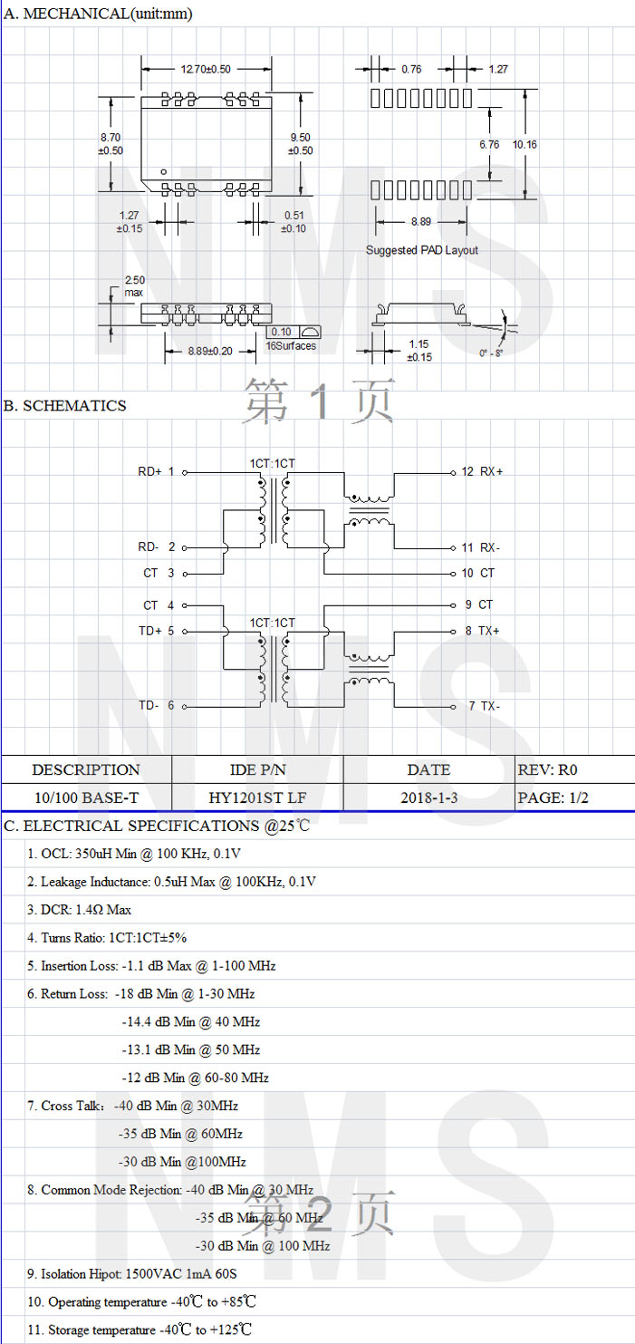 產(chǎn)品備注:SMD HY1201ST LF產(chǎn)品系列C